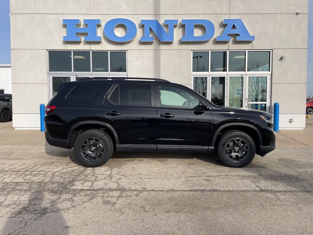 2025 Honda Pilot TrailSport AWD 10-Speed Automatic 3.5L V6 DOHC 24V 2nd Row Captain Chairs, 3rd Row Seating, Alloy Wheels, Android Auto, Apple CarPlay, AWD, Blind-Spot Detection, Heated Seats, Moonroof, Leather Seats, Inspected By ASE Certified Technicians, AWD.