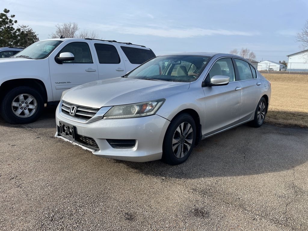 Alabaster Silver Metallic 2013 Honda Accord LX 2.4L I4 DOHC i-VTEC 16V FWD This vehicle comes well-equipped with these Cloth, 16" Alloy Wheels, 160-Watt AM/FM/CD Audio System, 4 Speakers, 4-Wheel Disc Brakes, ABS brakes, Air Conditioning, Alloy wheels, AM/FM radio, Automatic temperature control, Brake assist, Bumpers: body-color, CD player, Cloth Seat Trim, Delay-off headlights, Driver door bin, Driver vanity mirror, Dual front impact airbags, Dual front side impact airbags, Electronic Stability Control, Exterior Parking Camera Rear, Four wheel independent suspension, Front anti-roll bar, Front Bucket Seats, Front Center Armrest, Front dual zone A/C, Front reading lights, Fully automatic headlights, Illuminated entry, Low tire pressure warning, Occupant sensing airbag, Outside temperature display, Overhead airbag, Overhead console, Panic alarm, Passenger door bin, Passenger vanity mirror, Power door mirrors, Power steering, Power windows, Radio data system, Rear anti-roll bar, Rear seat center armrest, Rear window defroster, Remote keyless entry, Security system, Speed control, Speed-sensing steering, Speed-Sensitive Wipers, Steering wheel mounted audio controls, Tachometer, Telescoping steering wheel, Tilt steering wheel, Traction control, Trip computer, and Variably intermittent wipers. Odometer is 17111 miles below market average!
