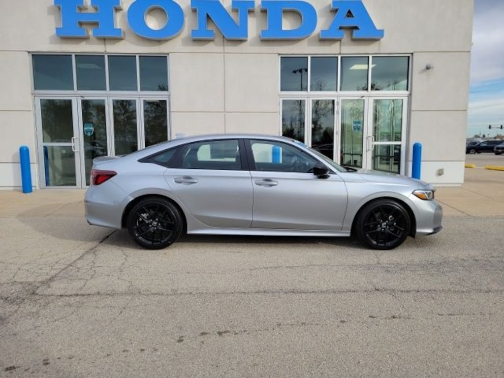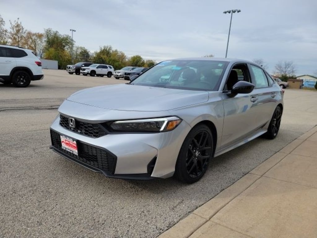 Solar Silver Metallic 2025 Honda Civic Sport 2.0L I4 DOHC 16V FWD This vehicle comes well-equipped with these Black w/Cloth Seating Surfaces, 4-Wheel Disc Brakes, 8 Speakers, ABS brakes, Adaptive Cruise Control: Adaptive Cruise Control (ACC) with Low-Speed Follow, Air Conditioning, Alloy wheels, AM/FM radio, Apple CarPlay/Android Auto, Auto High-beam Headlights, Automatic temperature control, Blind Spot Information (BSI) System warning, Brake assist, Bumpers: body-color, Cloth/Leatherette Seating Surfaces, Delay-off headlights, Driver door bin, Driver vanity mirror, Dual front impact airbags, Dual front side impact airbags, Electronic Stability Control, Emergency communication system: HondaLink, Exterior Parking Camera Rear, Four wheel independent suspension, Front anti-roll bar, Front Bucket Seats, Front Center Armrest, Front reading lights, Fully automatic headlights, Heated door mirrors, Illuminated entry, Knee airbag, Leather Shift Knob, Leather steering wheel, Low tire pressure warning, Occupant sensing airbag, Outside temperature display, Overhead airbag, Panic alarm, Passenger door bin, Passenger vanity mirror, Power door mirrors, Power steering, Power windows, Radio data system, Radio: 180-Watt Audio System, Rear anti-roll bar, Rear seat center armrest, Rear side impact airbag, Rear window defroster, Remote keyless entry, Security system, Speed control, Speed-sensing steering, Split folding rear seat, Steering wheel mounted audio controls, Tachometer, Telescoping steering wheel, Tilt steering wheel, Traction control, Trip computer, and Wheels: 18" Gloss Black Alloy.