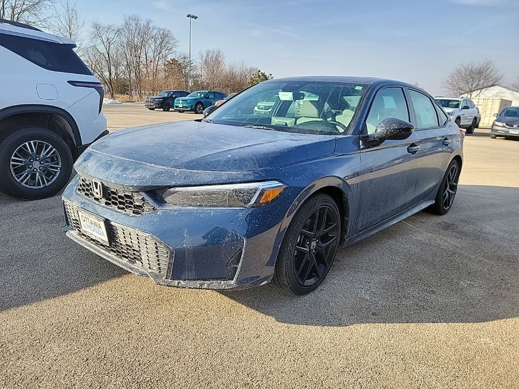 2025 Honda Civic Hybrid Sport 2.0L 16V DOHC FWD This vehicle comes well-equipped with these 2.0L 16V DOHC, 4-Wheel Disc Brakes, 8 Speakers, ABS brakes, Adaptive Cruise Control: Adaptive Cruise Control (ACC) with Low-Speed Follow, Air Conditioning, Alloy wheels, AM/FM radio, Apple CarPlay/Android Auto, Auto High-beam Headlights, Automatic temperature control, Blind Spot Information (BSI) System warning, Brake assist, Bumpers: body-color, Cloth/Leatherette Seat Trim, Delay-off headlights, Driver door bin, Driver vanity mirror, Dual front impact airbags, Dual front side impact airbags, Electronic Stability Control, Emergency communication system: HondaLink, Exterior Parking Camera Rear, Four wheel independent suspension, Front anti-roll bar, Front Bucket Seats, Front Center Armrest, Front dual zone A/C, Front reading lights, Fully automatic headlights, Heated door mirrors, Heated Front Bucket Seats, Heated front seats, Illuminated entry, Knee airbag, Leather Shift Knob, Leather steering wheel, Low tire pressure warning, Occupant sensing airbag, Outside temperature display, Overhead airbag, Panic alarm, Passenger door bin, Passenger vanity mirror, Power door mirrors, Power moonroof, Power steering, Power windows, Radio data system, Radio: 180-Watt Audio System, Rear anti-roll bar, Rear seat center armrest, Rear side impact airbag, Rear window defroster, Remote keyless entry, Security system, Speed control, Speed-sensing steering, Split folding rear seat, Steering wheel mounted audio controls, Tachometer, Telescoping steering wheel, Tilt steering wheel, Traction control, Trip computer, Variably intermittent wipers, and Wheels: 18" Gloss Black Alloy.