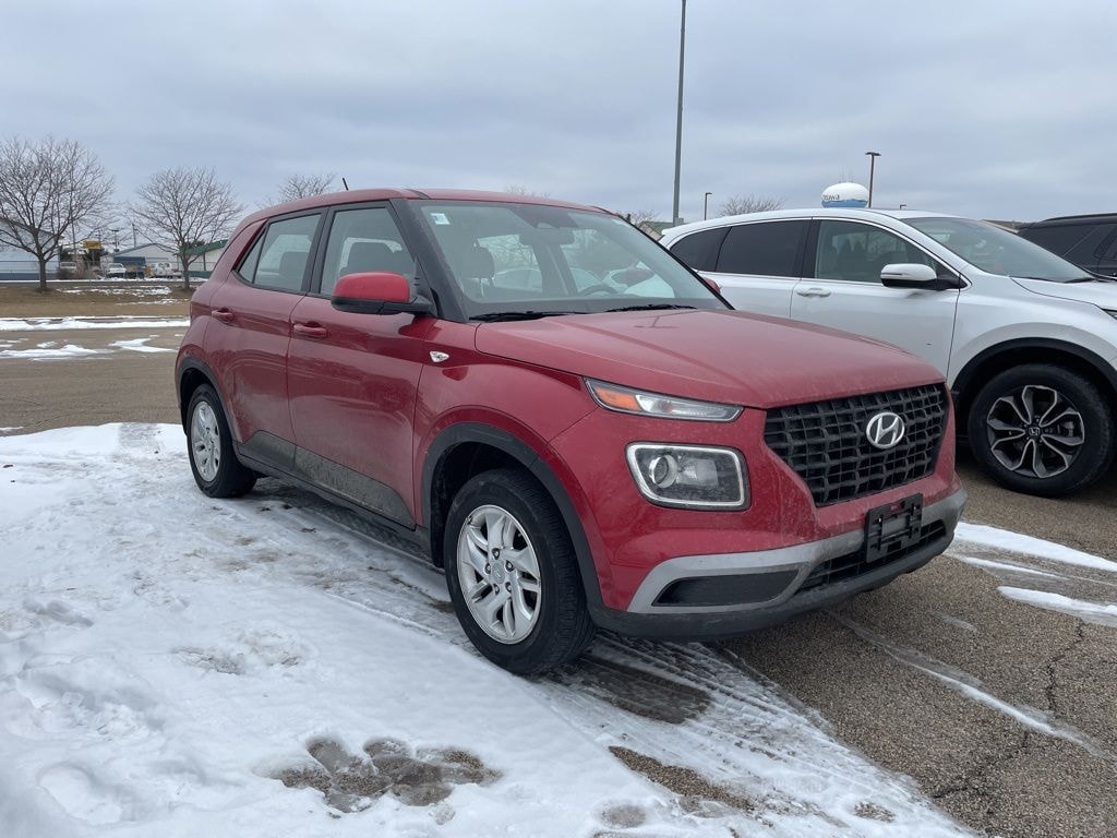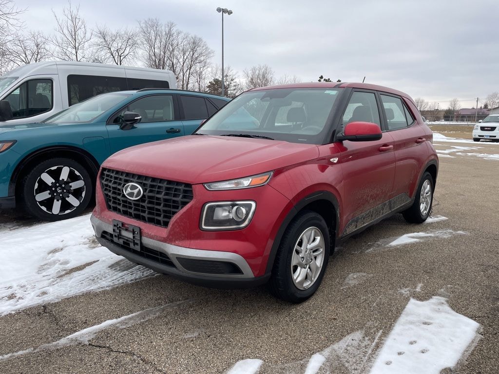 Scarlet Red Pearl 2023 Hyundai Venue SE I4 FWD This vehicle comes well-equipped with these Option Group 01, 4 Speakers, 6.052 Axle Ratio, ABS brakes, Air Conditioning, Alloy wheels, AM/FM radio, Apple CarPlay & Android Auto, Auto High-beam Headlights, Brake assist, Bumpers: body-color, Cargo Tray, Carpeted Floor Mats, Cloth Seat Trim, Delay-off headlights, Driver door bin, Driver vanity mirror, Dual front impact airbags, Dual front side impact airbags, Electronic Stability Control, Front anti-roll bar, Front Bucket Seats, Front Center Armrest, Front reading lights, Front wheel independent suspension, Fully automatic headlights, Illuminated entry, Low tire pressure warning, Mudguards, Occupant sensing airbag, Outside temperature display, Overhead airbag, Overhead console, Panic alarm, Passenger door bin, Passenger vanity mirror, Power door mirrors, Power steering, Power windows, Radio: AM/FM/HD Display Audio, Rear Seat Cup Holder, Rear window defroster, Rear window wiper, Remote keyless entry, Security system, Speed control, Speed-sensing steering, Split folding rear seat, Spoiler, Steering wheel mounted audio controls, Tachometer, Telescoping steering wheel, Tilt steering wheel, Traction control, Trip computer, Variably intermittent wipers, and Wheels: 6.0J x 15" Alloy.