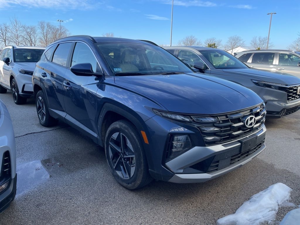 Atlantis Blue 2025 Hyundai Tucson SEL 2.5L I4 DGI DOHC 16V LEV3-SULEV30 187hp AWD This vehicle comes well-equipped with these Option Group 01, AWD, 18" Alloy Wheels, 4-Wheel Disc Brakes, 6 Speakers, ABS brakes, Air Conditioning, Alloy wheels, AM/FM radio: SiriusXM, Apple CarPlay & Android Auto, Auto High-beam Headlights, Automatic temperature control, Brake assist, Bumpers: body-color, Delay-off headlights, Driver door bin, Driver vanity mirror, Dual front impact airbags, Dual front side impact airbags, Electronic Stability Control, Emergency communication system: Bluelink+, Four wheel independent suspension, Front anti-roll bar, Front Bucket Seats, Front Center Armrest, Front dual zone A/C, Front reading lights, Fully automatic headlights, Heated door mirrors, Heated Front Bucket Seats, Heated front seats, Illuminated entry, Low tire pressure warning, Occupant sensing airbag, Outside temperature display, Overhead airbag, Overhead console, Panic alarm, Passenger door bin, Passenger vanity mirror, Power door mirrors, Power driver seat, Power Liftgate, Power steering, Power windows, Radio data system, Radio: AM/FM/HD Audio System, Rear anti-roll bar, Rear reading lights, Rear seat center armrest, Rear side impact airbag, Rear window defroster, Rear window wiper, Remote keyless entry, Security system, Speed control, Split folding rear seat, Spoiler, Stain & Odor Resistant Cloth Seat Trim, Steering wheel mounted audio controls, Tachometer, Telescoping steering wheel, Tilt steering wheel, Traction control, Trip computer, and Variably intermittent wipers.
