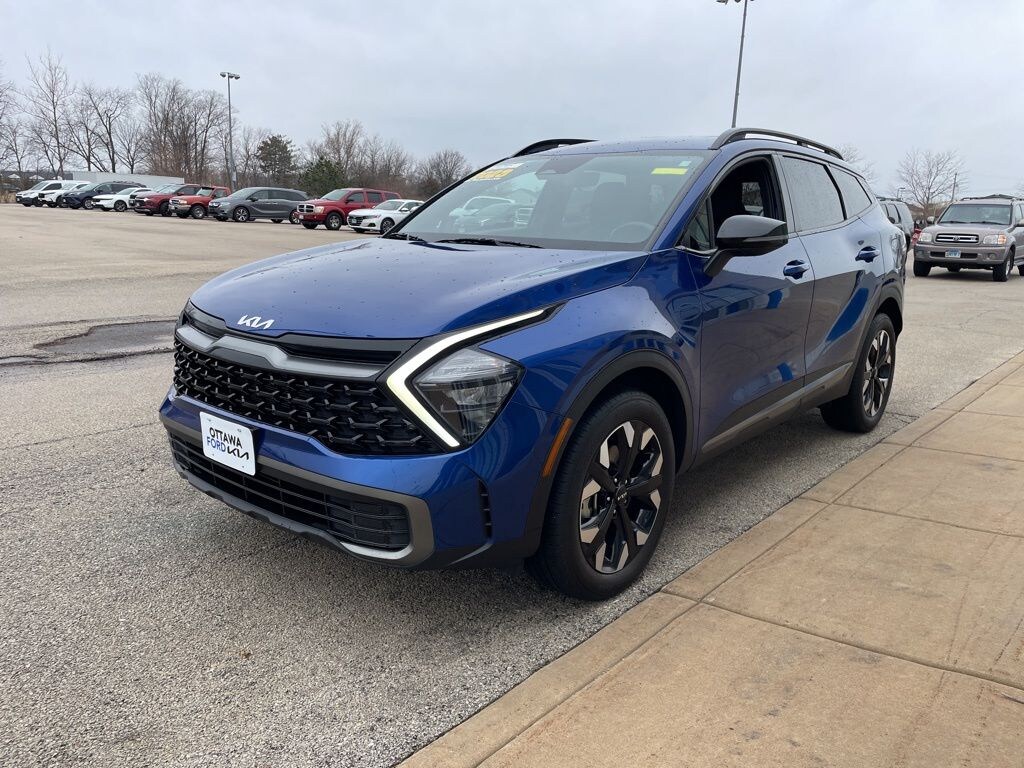 Sapphire Blue 2023 Kia Sportage X-Line I4 AWD This vehicle comes well-equipped with these AWD, 4-Wheel Disc Brakes, 6 Speakers, ABS brakes, Air Conditioning, Alloy wheels, AM/FM radio: SiriusXM, Apple CarPlay & Android Auto, Auto High-beam Headlights, Automatic temperature control, Axle Ratio: 3.648, Brake assist, Bumpers: body-color, Carpet Floor Mats X-Line, Compass, Delay-off headlights, Driver door bin, Driver vanity mirror, Dual front impact airbags, Dual front side impact airbags, Electronic Stability Control, Emergency communication system, Four wheel independent suspension, Front anti-roll bar, Front Bucket Seats, Front Center Armrest, Front dual zone A/C, Fully automatic headlights, harman/kardon® Speakers, Heated door mirrors, Heated Front Bucket Seats, Heated front seats, Illuminated entry, Leather Shift Knob, Leather steering wheel, Low tire pressure warning, Navigation System, Occupant sensing airbag, Outside temperature display, Overhead airbag, Overhead console, Panic alarm, Passenger door bin, Passenger vanity mirror, Power door mirrors, Power driver seat, Power steering, Power windows, Premium Leatherette Seat Trim, Radio: AM/FM/HD Audio System, Rain sensing wipers, Rear anti-roll bar, Rear seat center armrest, Rear window defroster, Rear window wiper, Remote keyless entry, Security system, Speed control, Speed-sensing steering, Split folding rear seat, Spoiler, Steering wheel mounted audio controls, Tachometer, Telescoping steering wheel, Tilt steering wheel, Traction control, Trip computer, Turn signal indicator mirrors, Variably intermittent wipers, and Wheels: 19" Gloss Black Alloy. Odometer is 10748 miles below market average!