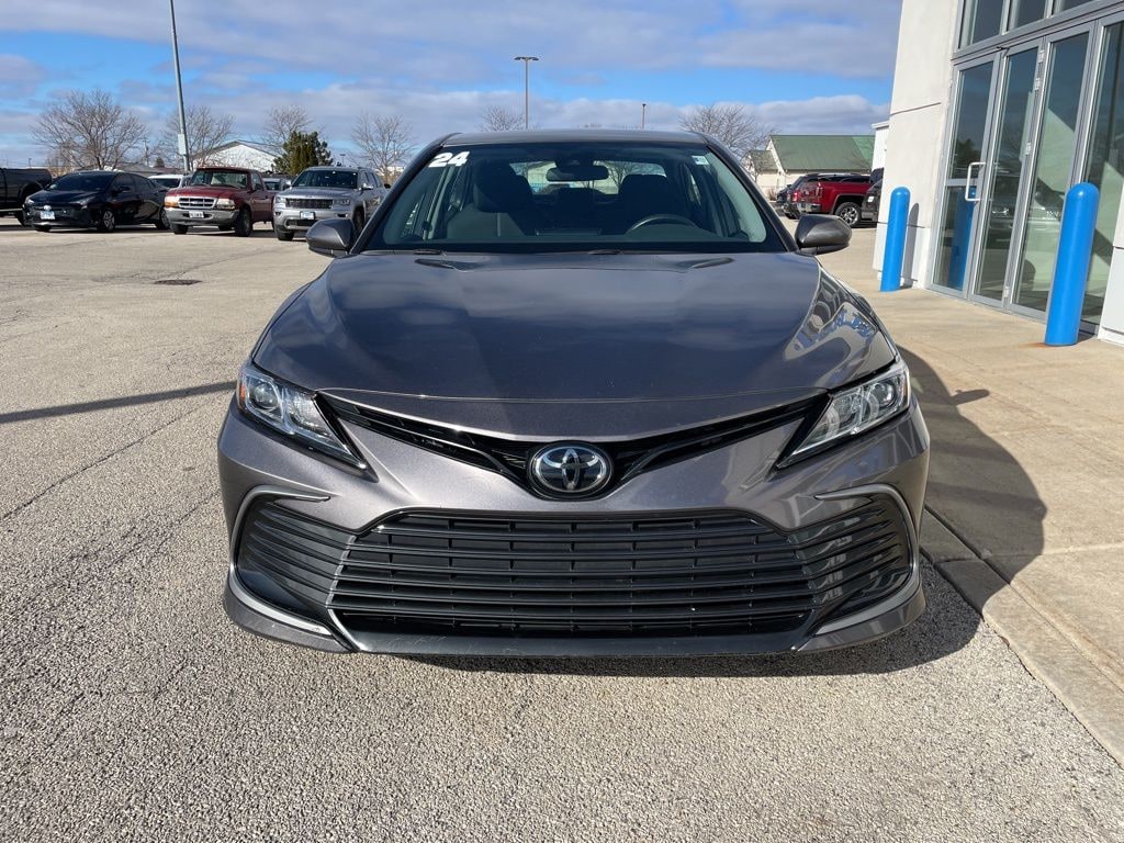 2024 Toyota Camry LE 2.5L I4 DOHC 16V FWD This vehicle comes well-equipped with these Cloth, 4-Wheel Disc Brakes, 6 Speakers, ABS brakes, Air Conditioning, Alloy wheels, AM/FM radio: SiriusXM, Apple CarPlay/Android Auto, Auto High-beam Headlights, Automatic temperature control, Brake assist, Bumpers: body-color, Delay-off headlights, Driver door bin, Driver vanity mirror, Dual front impact airbags, Dual front side impact airbags, Electronic Stability Control, Emergency communication system: Safety Connect (1-year trial), Exterior Parking Camera Rear, Fabric Seat Trim, Four wheel independent suspension, Front anti-roll bar, Front Bucket Seats, Front Center Armrest, Front dual zone A/C, Front reading lights, Fully automatic headlights, Illuminated entry, Knee airbag, Low tire pressure warning, Occupant sensing airbag, Outside temperature display, Overhead airbag, Overhead console, Panic alarm, Passenger door bin, Passenger vanity mirror, Power door mirrors, Power driver seat, Power steering, Power windows, Radio data system, Radio: Audio, Rear anti-roll bar, Rear seat center armrest, Rear side impact airbag, Rear window defroster, Remote keyless entry, Security system, Speed control, Speed-sensing steering, Split folding rear seat, Steering wheel mounted audio controls, Tachometer, Telescoping steering wheel, Tilt steering wheel, Traction control, Trip computer, Variably intermittent wipers, and Wheels: 17" x 7.5J Alloy.
