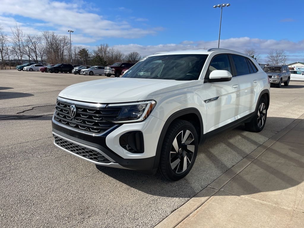 2025 Volkswagen Atlas Cross Sport 2.0T SE w/Technology 2.0L TSI AWD This vehicle comes well-equipped with these 4-Wheel Disc Brakes, 4-Wheel Independent Suspension, 6 Speakers, ABS brakes, Air Conditioning, Alloy wheels, AM/FM radio: SiriusXM with 360L, Auto High-beam Headlights, Auto-dimming Rear-View mirror, Automatic temperature control, Brake assist, Bumpers: body-color, Compass, Delay-off headlights, Driver door bin, Driver vanity mirror, Dual front impact airbags, Dual front side impact airbags, Electronic Stability Control, Emergency communication system: VW Car-Net Safe & Secure 5-year, Exterior Parking Camera Rear, Four wheel independent suspension, Front anti-roll bar, Front Bucket Seats, Front Center Armrest, Front dual zone A/C, Front fog lights, Front reading lights, Fully automatic headlights, Heated & Actively Ventilated Front Seats, Heated door mirrors, Heated front seats, Heated steering wheel, Illuminated entry, Low tire pressure warning, Occupant sensing airbag, Outside temperature display, Overhead airbag, Overhead console, Panic alarm, Passenger door bin, Passenger vanity mirror, Perforated V-Tex Leatherette Seating Surfaces, Power door mirrors, Power driver seat, Power Liftgate, Power steering, Power windows, Radio data system, Radio: MIB3 Composition Media AM/FM/HD, Rain sensing wipers, Rear anti-roll bar, Rear reading lights, Rear seat center armrest, Rear window defroster, Rear window wiper, Remote keyless entry, Security system, Speed control, Speed-sensing steering, Split folding rear seat, Spoiler, Steering wheel mounted audio controls, Tachometer, Telescoping steering wheel, Tilt steering wheel, Traction control, Trip computer, Turn signal indicator mirrors, Variably intermittent wipers, Ventilated front seats, and Wheels: 20" 5-Spoke 2-Tone Machined Alloy.